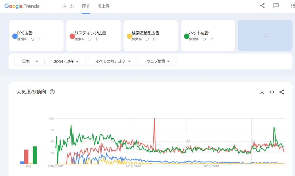 リスティング広告 →初期から使われていて、検索量も上がっていって、今も多く使われている